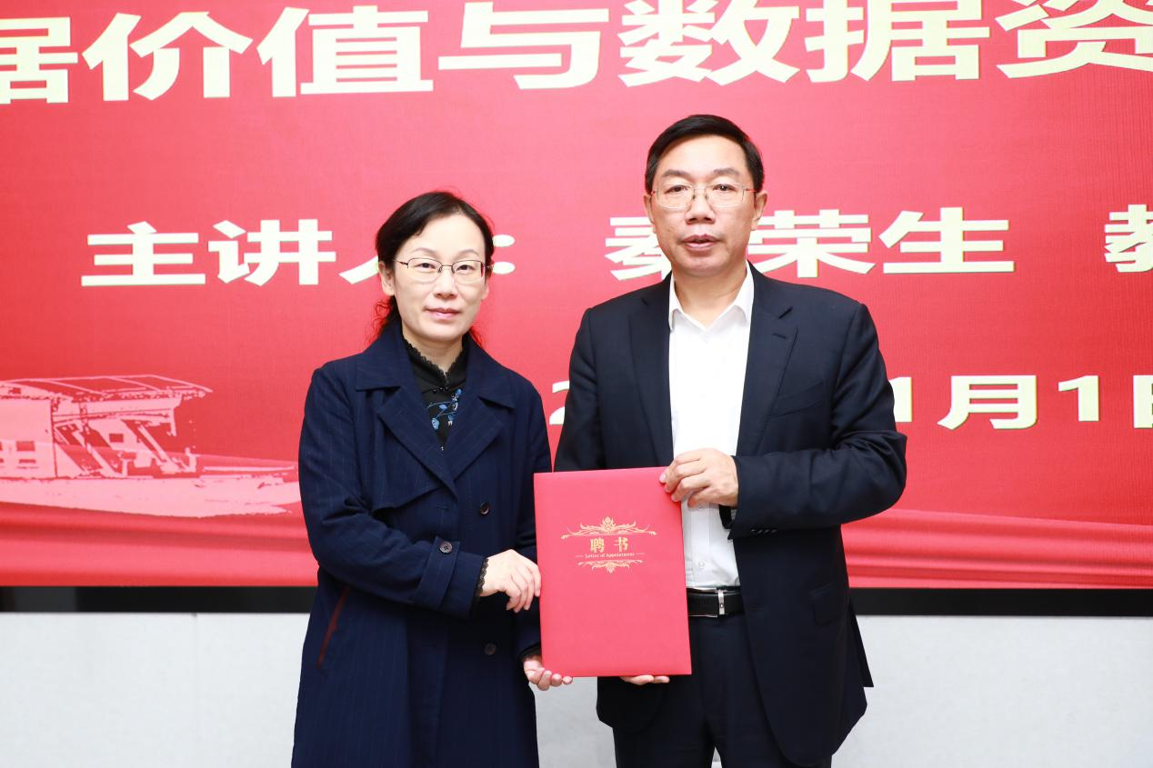 荣生教授从数据的特征、数据要素的价值及数据价值的实现等方面详细解读了数据价值,并从数据资产确权、数据资产入表、数据资产评估、数据资产交易、数据资产税收等方面阐述了数据资产管理,他指出数据不仅是国家和企业的核心资产,更是数字经济时代的关键生产要素,具备非物质、无形、虚拟、可复制、可共享等独特属性,能够在多个领域发挥重要作用,而且数据价值的实现不仅依赖于数据本身的质量和规模,还需要结合具体的应用场景、专业的加工处理、有效的传播解释以及在运营过程中的实际应用,数据资产管理是指对企业内部的数据进行有效管理和规范化处理,以保证数据的质量、完整性、安全性和可用性。此次报告会不仅提供了一个难得的学习机会,也为研究生们在数据资产研究方面提供了宝贵的指导和启示。