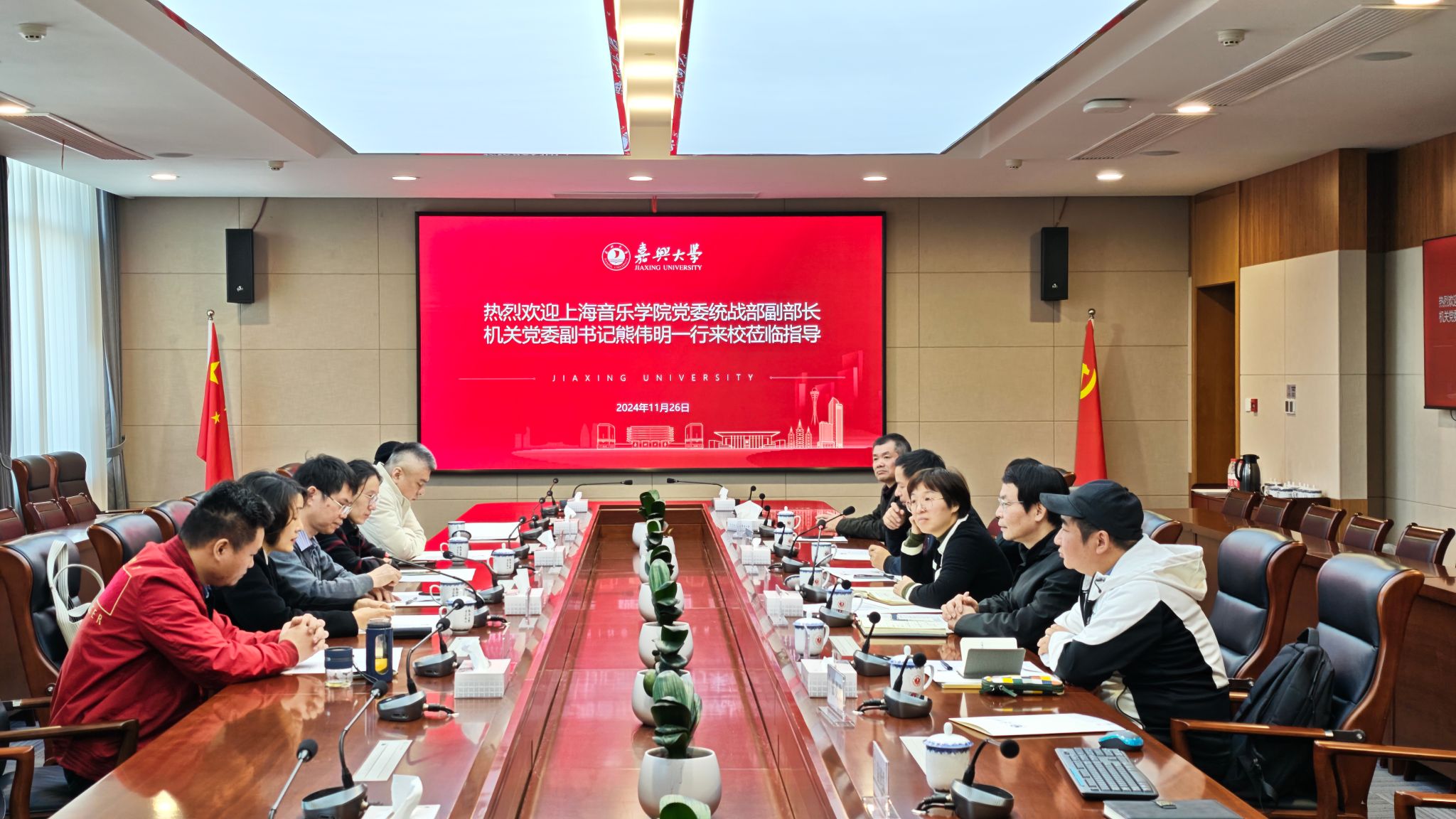 1126日,上海音乐学院统战部副部长熊伟明、民建上海音乐学院支部主委邱曙苇等一行6人来金沙官网调研交流。学校党委组织部副部长、统战部副部长庄美燕,民建嘉兴市委会副主委韦浩出席会议。民建金沙集团186cc支部主委、金沙集团186cc教师王卫彬,金沙集团186cc支部会员、金沙集团186cc教师陈野、宋相鑫参加交流活动。